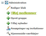 Hvis du ikke har menupunktet ”Administration” under din klub, er du ikke er administrator for din klub. For at blive administrator skal du kontakte en af de nuværende administratorer for din klub og bede vedkommend tilføje dig som administrator. Du finder administratorerne ved at klikke på navnet for din klub i venstremenuen.