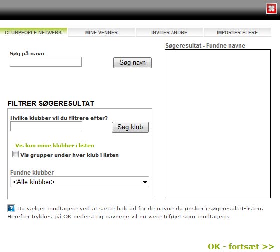 Du kan nu sende invitationerne afsted. Modtagerne skal hver især acceptere den invitation du har udsendt (den kommer ud til deres mailadresse) og når dette er sket, er de medlemmer af din klub.
