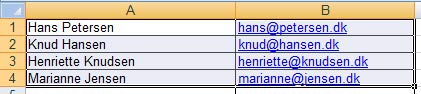 På ovenstående billede kopieres de valgte med ”CTRL-C” for kopiér. (Husk det skal være kolonnerne navn og email, der kopieres – og KUN dem).