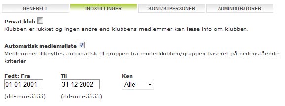Du kan manuelt gruppere medlemmerne i din klub under fx alder for at give medlemmerne målrettet adgang til tilmelding for netop deres alder.