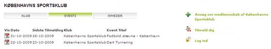 Her vises de offentliggjorte klub events.