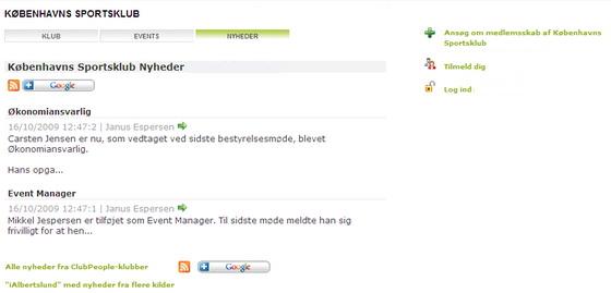 Her vises de offentliggjorte klub nyheder.