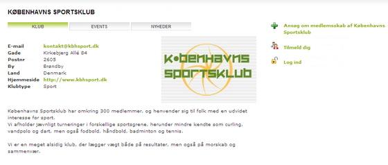 På forsiden står profilteksten for din klub, samt logo og kontaktinformationer.