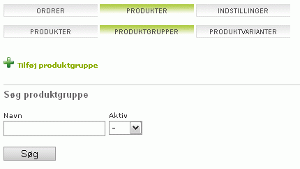 Du kan søge efter eksisterende grupper for at redigere eller slette dem, eller du kan oprette en ny grupper ved at trykke på "Tilføj produktgruppe".