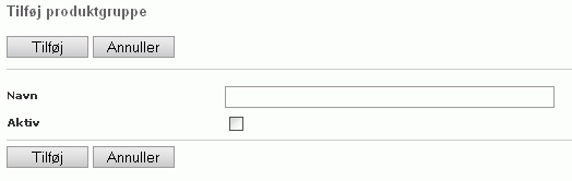 Når du trykker på "Tilføj Produktgruppe" vil du få vist nedenstående billede. Her kan du indtaste navnet på gruppen, og vælge om den skal være aktiv i shoppen.